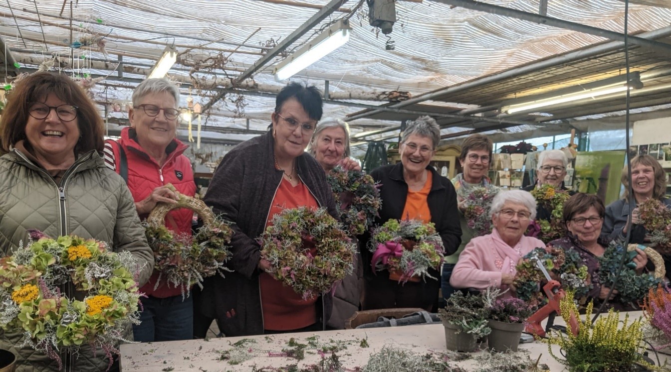 Seniorenworkshop in der Gärtnerei Bartoschek: Liebevoll gestaltete Wintergestecke