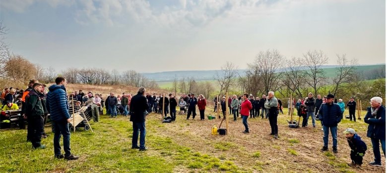 Am Samstag, den 21. März 2026, verwandelte sich der Jubiläumswald am Roten Graben wieder in ein kleines Pflanzparadies: 54 motivierte Baumpaten brachten Setzlinge liebevoll in die Erde. Bürgermeister Daniel Rauschenberger eröffnete die Aktion gemeinsam mit Landrat Klaus-Peter Schellhaas und Forstamtsleiter Sebastian Vocilka. Unterstützt wurden die Helfer von Förster Bernd Werne, der mit praktischen Tipps zur Pflanzung und Pflege die Setzlinge optimal in Szene setzte: „Schauen Sie nach Ihrem Baum – ein kleiner Schluck Wasser freut ihn sicher!“