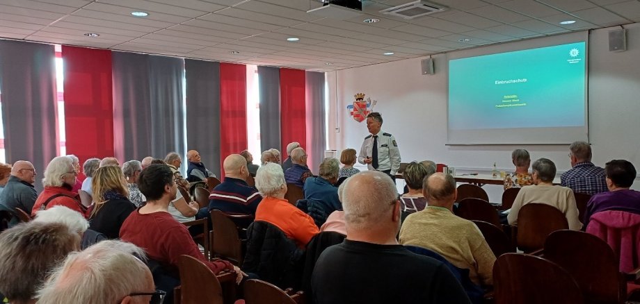 Am Montag, dem 23. März 2026, hieß es in der Kulturhalle Schaafheim „Sicherheit geht vor!“ – rund 70 Bürgerinnen und Bürger kamen, um beim Vortrag von Polizeihauptkommissarin Simone Stock mehr über wirksamen Einbruchschutz zu erfahren. Anschaulich und praxisnah erläuterte sie, wie jeder Haushalt besser geschützt werden kann und worauf es bei der Prävention ankommt.